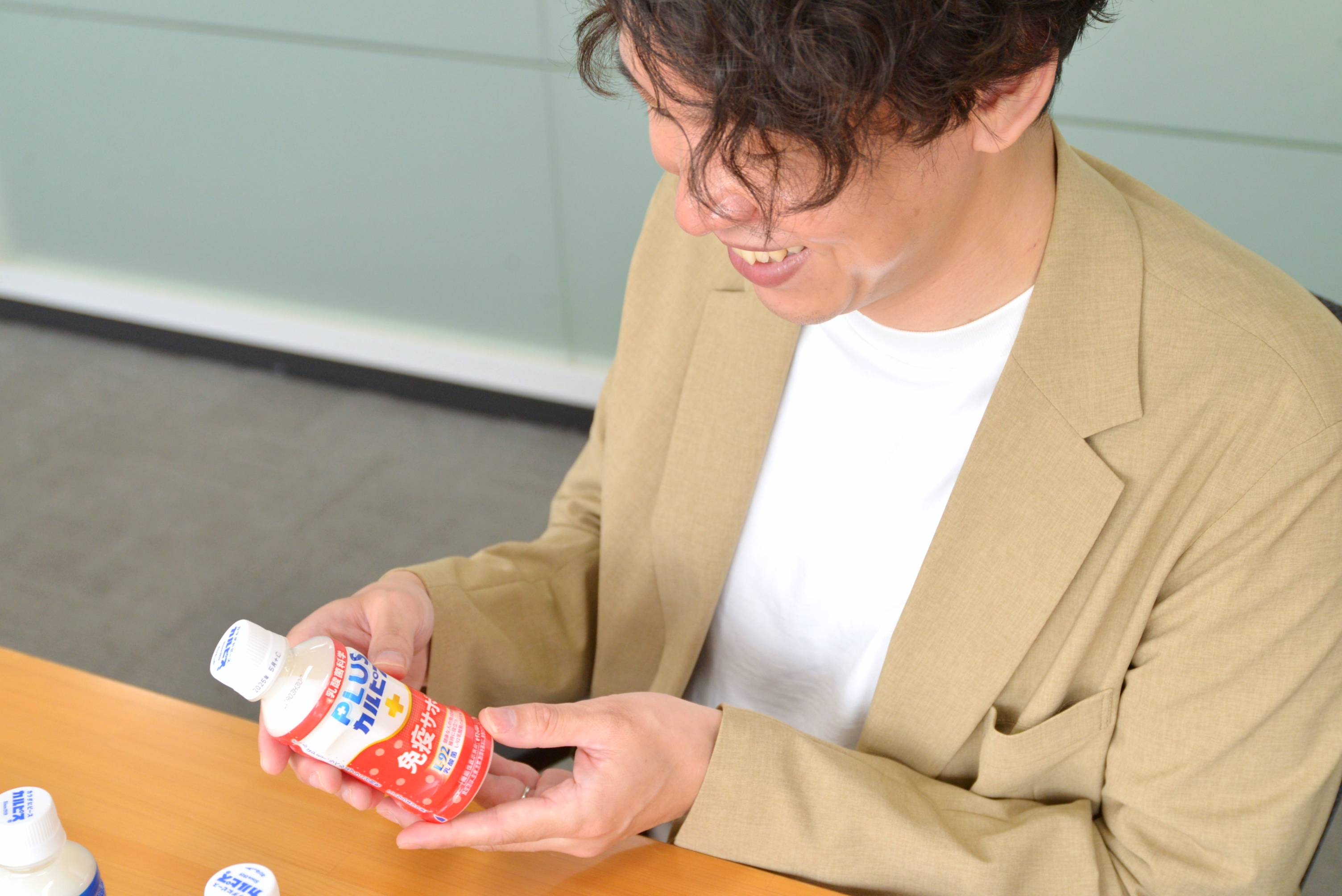 PLUSカルピス®に関しては、飲み方のバリエ―ションを増やしていきたいと話す山本。2025年4月には、490mlでゴクゴク飲める「PLUSカルピス® 免疫サポートウォーター」が発売されたが、そのほかにも、PLUSカルピス®の希釈タイプの商品化を構想したりと、アイデアは尽きません。