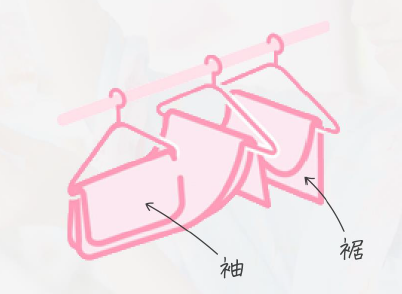 しわを伸ばして形を整え、ハンガー3本を使って陰干しする。