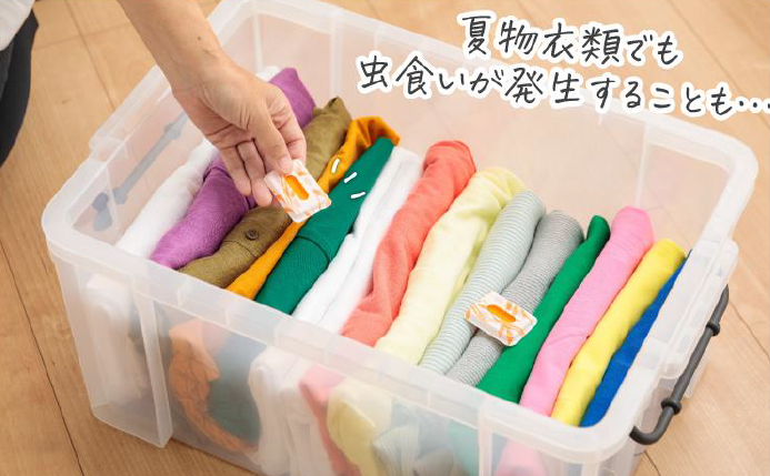 一方で春の衣替えで衣類を収納する場合は、ゴールデンウィークが終わるまでに済ませるのがひとつの目安。というのも、ゴールデンウィークを過ぎると、衣類の害虫が卵を産み始める時期に入るからです。害虫は冬物に多い、ウール、カシミア、シルクなどの動物性繊維が大好物。綿などの植物性繊維は比較的安全ですが、皮脂汚れや牛乳などのタンパク質汚れが残っていると、虫のターゲットになってしまいます。冬物を干している間に卵を産みつけられることもあるため、GWが終わるまでに早めの衣替えを済ませるのがおすすめです。