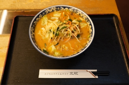 宿泊の楽しみであるサウナ飯もバリエーション豊富です。北欧特製カレーライスと若鶏のからあげは定番の人気メニュー。菅さんのおすすめは味噌ラーメン。炒め野菜の香ばしさと濃いめの味噌が、サウナで失った塩分をしっかりと補ってくれます。