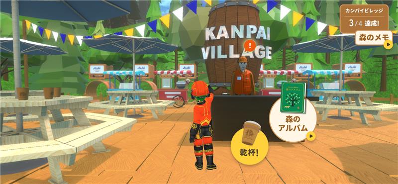 最後は、森の奥にあるカンパイビレッジでバーチャル乾杯。すべてのミッションをクリアすると、「金のタンブラー」が手に入ります。