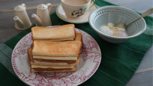 4.トースターで食パンをこんがりとするまで焼きます。
