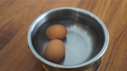 ※冷たい卵の場合は、室温に5〜10分ほど置くか、ぬるま湯で温めてヒビが入らないようにします。