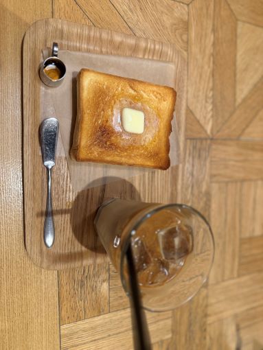 トーストには、塩気が効いたカルピスバターと糖蜜が添えられています。サクッとしたトーストにバターと甘いシロップがじゅわっと染み込んで、シンプルながら贅沢な味わいが楽しめます。