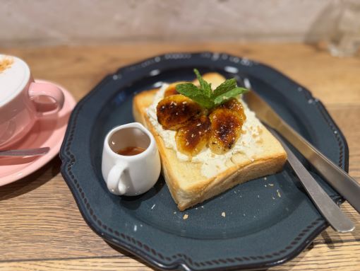 もっとボリューミーな朝ごはんを食べたい方には、「生キャラメルバナナトースト(1,200円)」がおすすめ。マスカルポーネを使ったホイップに、カリっとブリュレしたバナナがたっぷり。自家製の濃厚な生キャラメルをかけて、爽やかなミントと共にいただきます。
