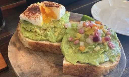 アボカドトーストは2つにわかれていて、卵をのせている方はこってり系、野菜がのっている方はさっぱり系と、テイストの違う2種類の味が楽しめます。アボカドペーストは食感を楽しめるよう、ダイス状に形を残して作っているので食べ応えも抜群。